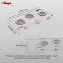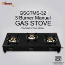 Golden Surya Premium Toughened Glass Top, ISI Certified PNG, (MS Powder Coated), Iron Manual Gas Stove (3 Burners)