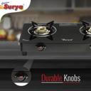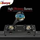 Golden Surya Spark, Premium Toughened Glass Top, ISI Certified, LPG Use" ( MS Poder Coated) Iron Manual Gas Stove (2 Burners)