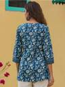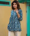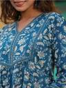 Golden Wings Women Floral Print A-line Kurta (Blue)