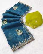 foundland Embellished Assam Silk Chiffon Saree (Purple, Yellow)