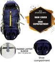 Climate proof trekking bag/travel bags/trekking abg with rain cover with shoes compar. Rucksack Bag(NAVY BLUE) 65L Rucksack - 65 L (NAVY BLUE) with rain cover free