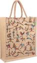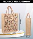 Durable jute fabric with reinforced stitching, spacious single compartment for everyday essentials, lightweight and easy to carry, stylish printed design suitable for all occasions, eco-conscious material, comfortable long shoulder straps, water-resistant inner lining, perfect for college, office, shopping, travel and casual outings.