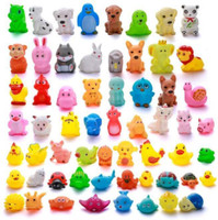 Boasting a delightful mix of animal characters, this set includes a random assortment of creatures such as pigs, tortoises, frogs, ducks, chickens, hens, fish, cats, dogs, birds, whales, octopuses, and penguins. The variety keeps children engaged, encouraging imaginative play. Also, the compact design ensures these toys fit easily in small hands, making them simple to hold, squeeze, and interact with during bath time.