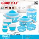 Good Day Grace Hot & Fresh Food Safe Inner Steel Casserole with Serving Spoon, Water Jug and Storage Container Serving Set (Pack of 12)