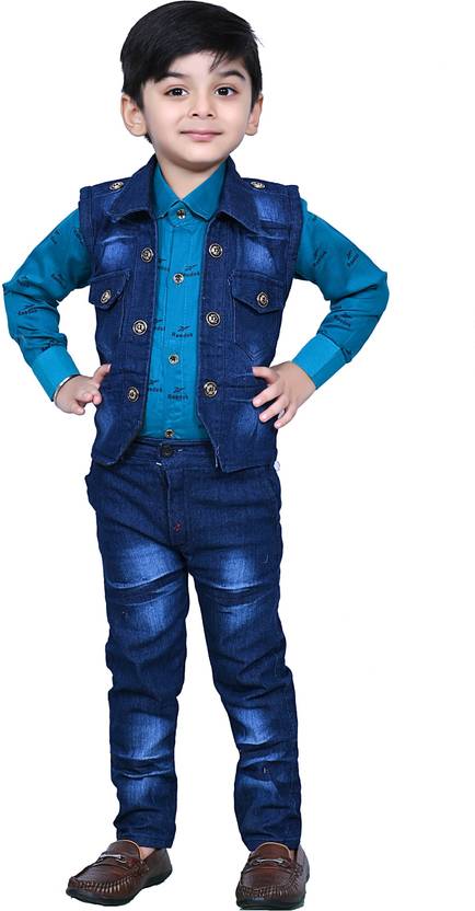 Good Doo Apparel's Boys Casual Jacket Shirt, Jeans (Blue, Blue)
