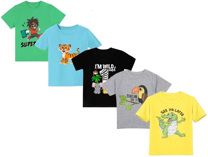 Good Luck Baniyan Baby Boys Printed Cotton Blend Regular T Shirt (Multicolor, Pack of 5)