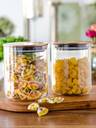 Store and elegantly display foods in borosilicate glass jars with copper finish lids. Theses jars are durable, clear, scratch resistant, not to mention stylish. Made from 100% Borosilicate Glass, these jars can be put directly in the oven or microwave (without the lid) to enure that the food remains fresh in the most humid weather. The jars can be used to store anything from pulses, grains, pasta in the kitchen to dry fruits and snacks in your living spaces.