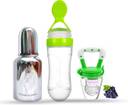 Goodmunchkins Stainless Steel Feeding Bottle(150ml) Silicone Spoon Feeder (90ml) & Fruit Feeder for Babies -304 SS-No Joints-Anti Colic Silicon Nipple-Food Grade Silicon Feeder BPA Free Pack 3 - 150 ml  (Green & Green)