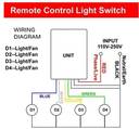 Four-way remote control switch 220V four-way lamp wireless remote control lighting switch four-way remote control. Its Suitable For Home, Office, Hotel, Factory, Hospital, Restaurants, Meeting Rooms, Museum, Shop, and Art Gallery etc. Perfect for remote controlling of droplight, crystal lamp, modern low-pressure lamp, absorb dome light, day flower lamp, fluorescent lamp, energy-saving lamps, exhaust fan, LED light etc. Every set of remote controlling switch has its special code. More sets can be used in one room without interference. Working voltage: 180~240. Working frequency: 50Hz. Total load power: 600W. Remote control distance: 50m. Working temperature: -20~75(?). Scope of application: lighting. Custom processing: Yes. Host: 90*53*25mm Handle: 110*43*15mm. Rated voltage: AC 180~240V 50HZ~60HZ. Total load power: Incandescent lamp 800W Fluorescent lamp 200W. Package included: 1 x 4CH Remote Control , 1 x 4ch Receiver, 1 x 23A 12V battery.