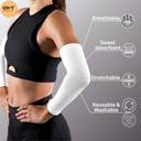 Designed in classic white with unisex appeal, these arm sleeves complement anyone’s wardrobe regardless of gender. Effortlessly blend style with practicality, whether paired with casual outfits or activewear; it's an easy-to-match essential that keeps fashion simple while delivering everyday protection.