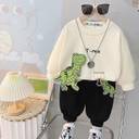 The Googo Gaaga Boys Full Sleves Cotton Text Printed Sweatshirt & Trouser Set is designed with both style and comfort in mind, making it the perfect choice for your little boy’s wardrobe. This Cream & Black color clothing set is a great option for parents looking for a stylish yet functional outfit for their child. The Sweatshirt boasts a fun and playful Printed design that adds an extra element of excitement and personality to the look. The vibrant Cream color combination is modern and eye-catching, making your little one stand out, whether he’s at a family gathering, playdate, or just playing around the house. Made from a high-quality cotton blend, the sweatshirt and pant set is soft, breathable, and gentle on your child’s sensitive skin. The half cotton material ensures that your child remains comfortable in various conditions, whether indoors or outdoors. This set is perfect for everyday wear, whether your child is attending daycare, heading out for a casual outing, or simply relaxing at home. Playtime is essential for growing kids, and this outfit is designed to accommodate that. The relaxed fit allows your child to move around with ease, making it ideal for both indoor and outdoor activities. The Printed design adds a fun twist, making it appealing to kids, while the comfort and durability of the fabric make it a gift parents will appreciate. Busy parents will love the low-maintenance nature of this set. The fabric is durable and easy to clean, making it perfect for active kids who are constantly on the move.