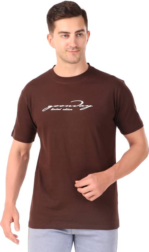 Men Self Design Round Neck Organic Cotton Brown T-Shirt