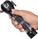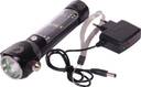 This is a 7.5 inch flashlight, it comes with chargers and one battery, you can charge the battery at home or under sun light as it has solar charging panel; This solar flashlight has a built-in 2200mAh 18650 battery, could be charged with included Cable (4-5hrs) or Solar Power (30hrs), using the cable to connect your phone with the flashlight and charging your phone for emergency Flashlight is water resistant & shock resistant for use under the most rugged, emergency condition Headlight (3-5hrs) -High, Medium and Flashing, Side White Lamp (3-6hrs) - High and Medium, Side Red Light (5-6hrs) - Flashing and Slow-flashing; Press the switch to change working mode and long press 3s to change working LED. Its beam can be focused that throws light up to an impressive 700 feet Suitable environment: everyday carry, camping, hiking, night riding, caving, hunting; Outdoor projects: fishing, driving, hiking, and camping.