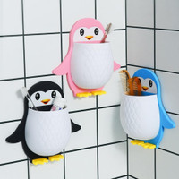Gorilax Penguin Shape Toothbrush Holder - 3 Pack, Self-Adhesive Plastic Toothbrush Holder (Multicolor, Wall Mount)