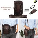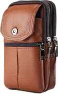 GOTEO Leather Waist Bag Belt Pouch Mobile Phone Passport Holder Travel Camping Sports Running Waist Pouch for Men and Women (Brown)