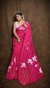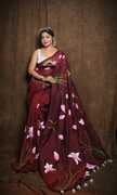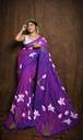 GOURISAREE Printed Hand Batik Cotton Blend Saree (Purple)