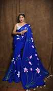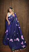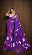 Printed Hand Batik Cotton Blend Saree (Purple)