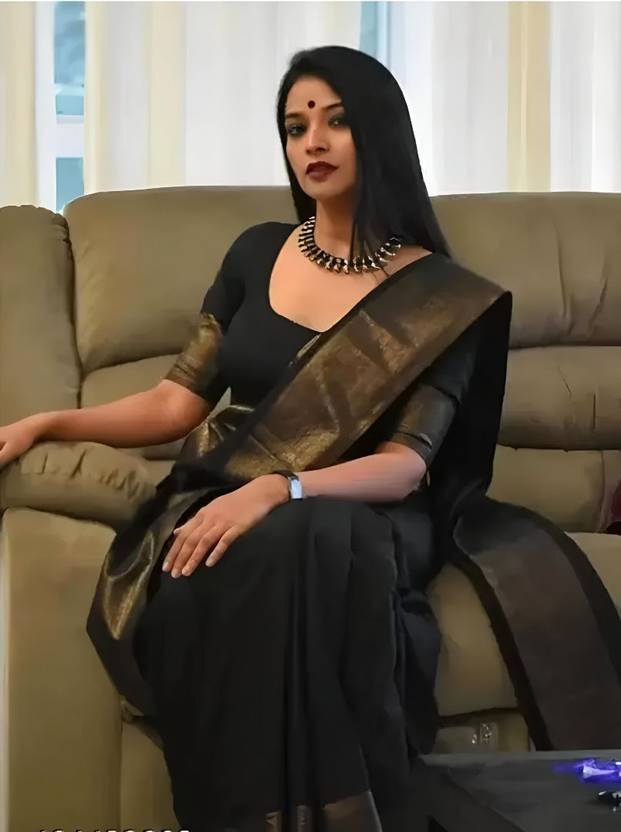 AAYATFABRICS Woven Banarasi Cotton Silk Saree (Black)