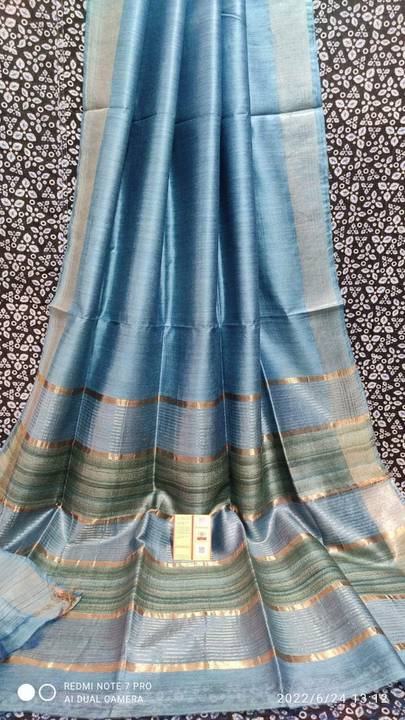 govind handloom Solid/Plain Bollywood Jute Silk Saree (Blue)