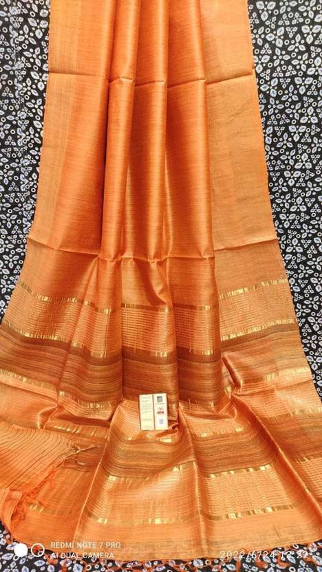 govind handloom Solid/Plain Bollywood Jute Silk Saree (Orange)