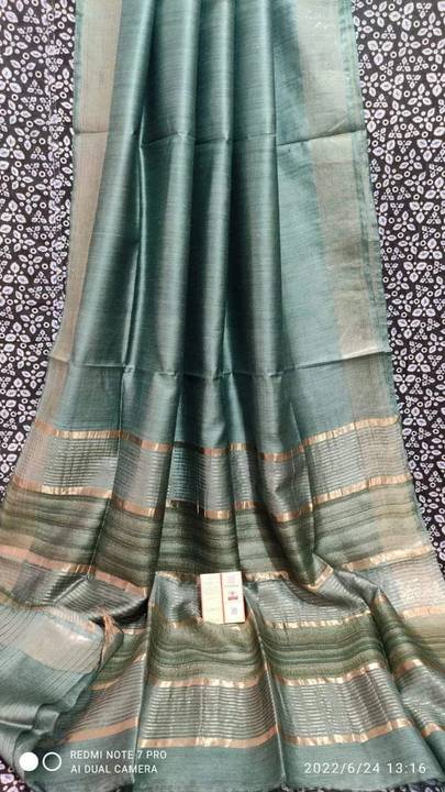 govind handloom Solid/Plain Bollywood Jute Silk Saree (Blue)
