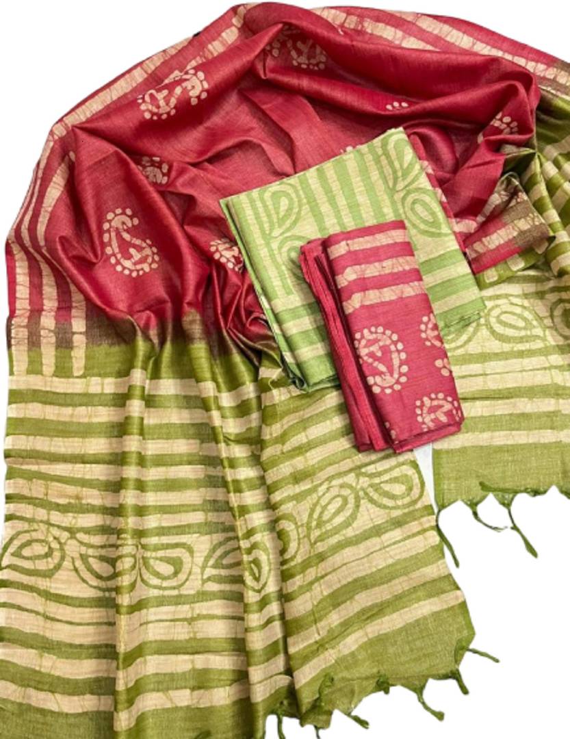 govind handloom Solid/Plain Bollywood Jute Silk Saree (Green)