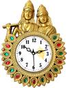 GrabBasket Analog 31 cm X 24 cm Wall Clock (Gold, Orange, With Glass, Standard)