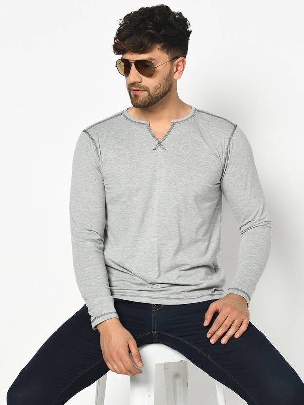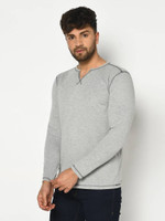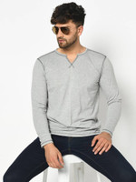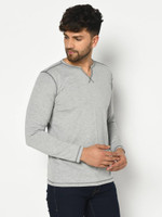 Sporting a round neck with a V-notch, this T-shirt offers a touch of modern sophistication while maintaining day-long comfort. With long sleeves and a regular fit, it provides a balanced silhouette that flatters without restricting movement. Furthermore, the combination of design elements creates a contemporary look, ensuring you feel well-presented throughout the day.