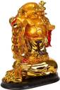GRACE ENTERPRISES Laughing Buddha Sitting On Dragon Blessing Good Luck Decorative Showpiece Decorative Showpiece - 10 cm (Polyresin, Gold)
