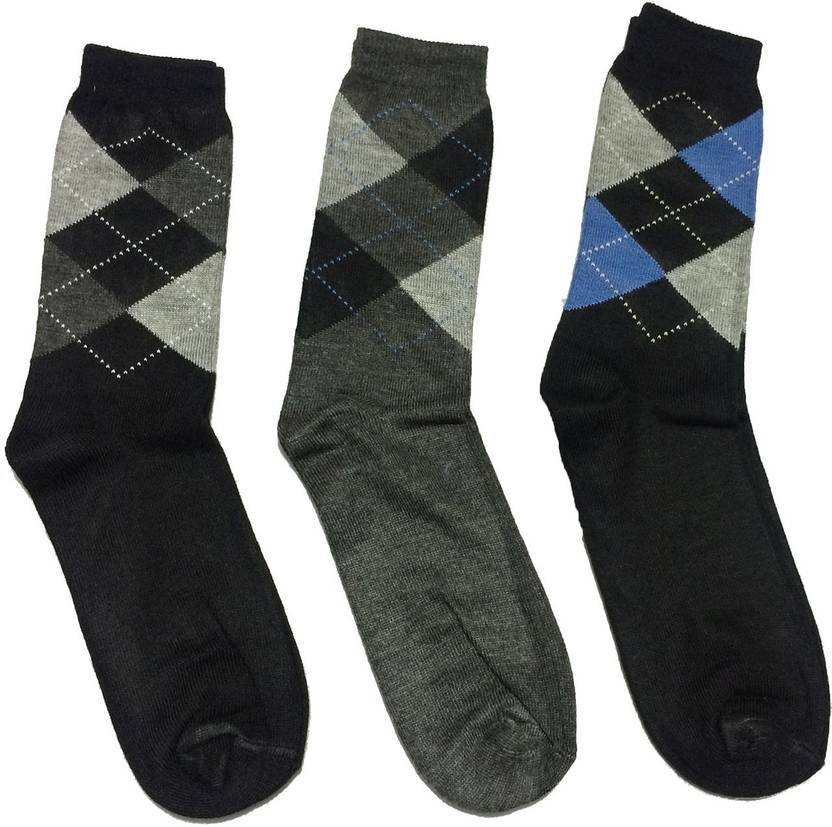 Men Geometric Print Mid-Calf/Crew (Pack of 3)