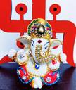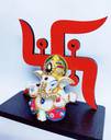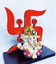 GRACIE COLLECTION LORD GANESHA DECORATED BY STONE WITH WOODEN BASE & SWASTIK Decorative Showpiece - 11 cm (Polyresin, Red)