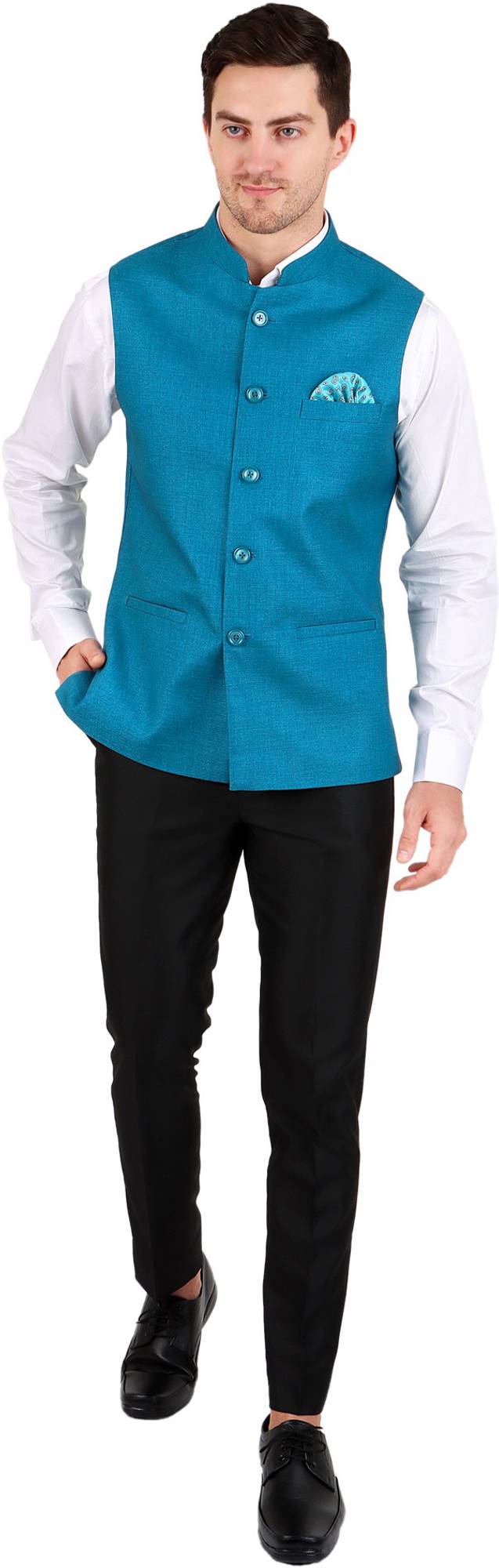 Jute Nehru/Modi Jacket (Waistcoat) is a stylish and traditional piece of clothing for men. The waistcoat is made from jute, a natural, renewable, and biodegradable fiber that is highly versatile and perfect for making clothing. The jute material is strong yet lightweight and has a luxurious, smooth texture. It is available in a variety of colors and sizes and is perfect for any occasion. This Nehru Jacket is designed with a classic Nehru collar and features a full-length front button closure. The waistcoat has two side pockets, one for a pocket square, and one inner pocket. The waistcoat is tailored to fit and flatter the body and is perfect for those who like to dress to impress. The waistcoat is perfect for special occasions such as weddings, parties, and formal events.