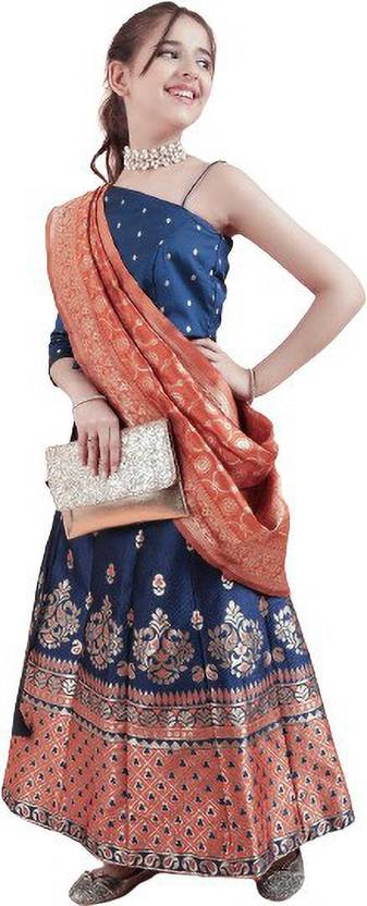 Baby Girls Lehenga Choli Fusion Wear Self Design Lehenga, Choli and Dupatta Set (Red, Pack of 1)