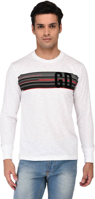Men Printed Round Neck Cotton Blend White T-Shirt