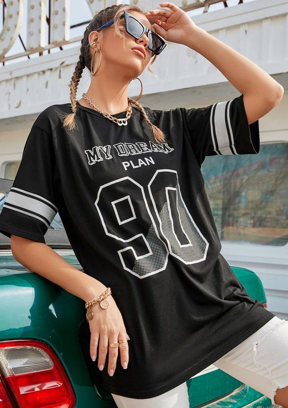 GRAND MALBORK Graphic Print, Typography Women Round Neck Black T-Shirt
