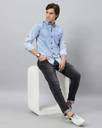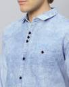 GRANDSTITCH Men Washed Casual Light Blue Shirt