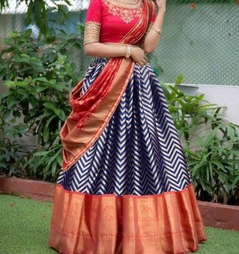 GRANTH MANIAFAB Self Design Semi Stitched Lehenga Choli (Blue, Red)