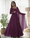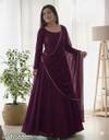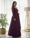 Type: Anarkali Gown, Style: Long Flared Ethnic Gown, Color: Wine Purple, Pattern: Solid, Occasion: Festive, Party, Wedding, Traditional Functions, Sleeve Type: Full Sleeve