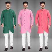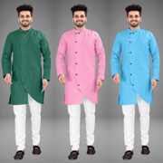 Pack of 3 Men Self Design Cotton Blend Trail Cut Kurta (Multicolor)