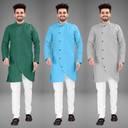 Pack of 3 Men Solid Cotton Blend Trail Cut Kurta (Multicolor)