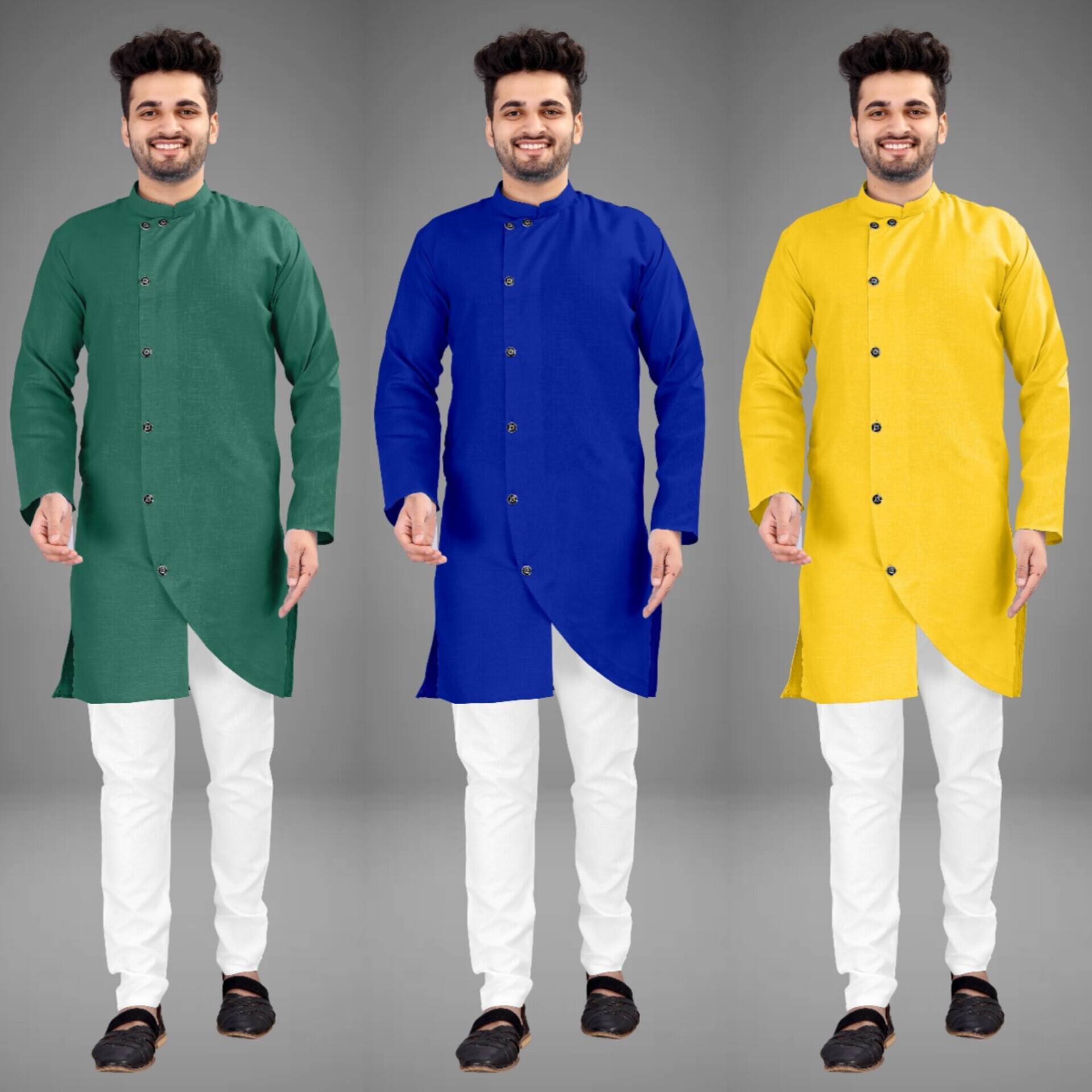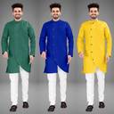 Pack of 3 Men Solid Cotton Blend Trail Cut Kurta (Multicolor)