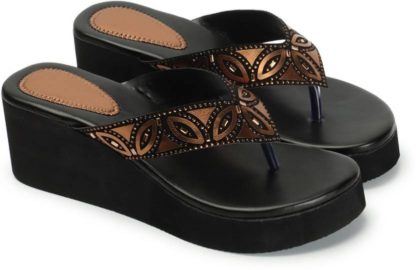 Women Wedges Sandal (Black , 5)