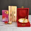 1 Rakhi, 1 Lumba 1 thali, 1 greeting card, 1 roli chawal pack