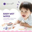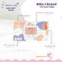 Great Care Baby 99% Pure Water Wet Wipes – Aloe Vera & Vitamin E, Soft and Paraben Free (240 Wipes)
