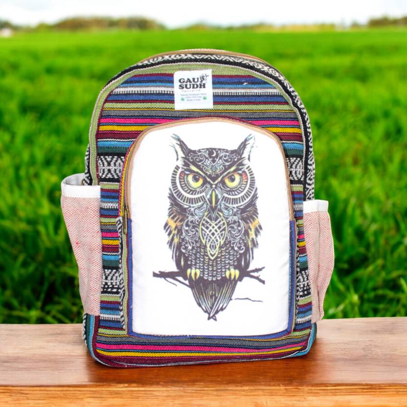 Add a touch of sustainability to your everyday adventures with this handmade Himalayan hemp backpack. Crafted from 100% natural hemp, this durable and eco-friendly backpack is designed for those who appreciate style, functionality, and sustainability. Its compact 15" x 13" x 4" size makes it the perfect small daypack for school, work, travel, or outdoor activities.