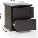 The Green Soul Rivur Bedside Table is a sleek and stylish addition to any modern home. Made from premium quality engineered wood and robust particle board with a thickness of 15mm, this bedside table is durable and built to last. Its dark wenge color & suede finish add a touch of elegance to your bedroom, living room etc.. With dimensions of 46.5cm (height) X 40cm (depth) X 45cm (length), this bedside table is compact and space-saving. It features 1 surface top & 2 drawers, providing ample storage space for your bedside essentials such as a lamp, books, or phone charger. It is designed with keeping safety in mind. It is free from toxins, chemicals & sharp edges, ensuring that it is safe to use in your home. Its total load capacity is 45 kg, with a maximum weight of 20 kg allowed on the surface. Our bedside table comes with damage proof packaging, including honey-comb protection on the corners and sides of the carton box to ensure that it arrives at your doorstep in perfect condition.