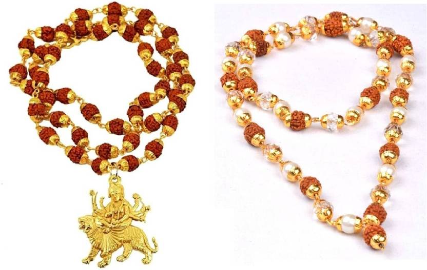 Religious Durga Mata Locket With Puchmukhi Rudraksha Mala (8MM 36Beads) Pack 2