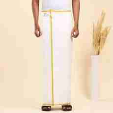 Ramraj Cotton Single Layer White with 3/4 Gold Jari Border Solid Men Dhoti