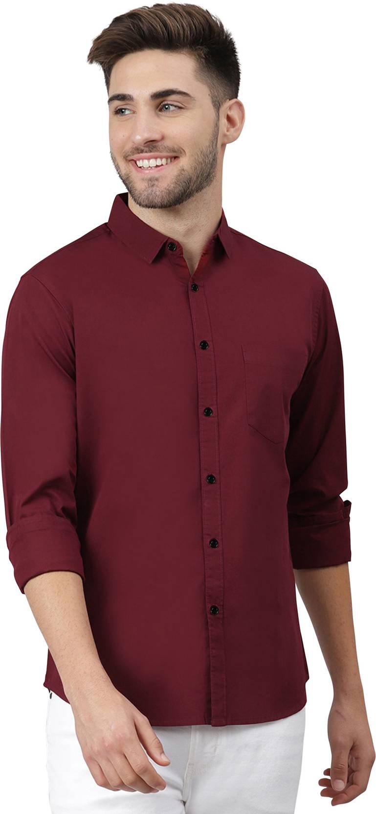 IKON FASHION Men Solid Casual Maroon Shirt