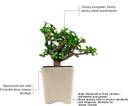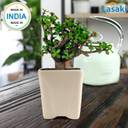 Product Details: Plant Name- Jade Plant, Plant Type- Succulent Plant, Plant Placement- Indoor & Outdoor. Pot Dimension (D x H): 8 cm x 8 cm ; Plant with Pot Height: 22 cm. Material: Live Plant & Ceramic Pot (Plant with Pot). Bring some flare to your interiors. Eye catching and beholding, ruffle collection with fresh plants from Lasaki is perfect addition indoors. This pot is glossy and hand painted. They are doubly fired for that extra glazed look. The freshest air purifying plants or good luck plants in these bold planters will bring the "Bright" factor to any space. The jade plant is popular succulent houseplant with fleshy, oval-shaped leaves and thick, woody stems that resemble tiny tree trunks. With a bit of easy care, it can grow to be between 3 and 6 feet tall, but does so slowly, only growing about two inches a year. FEATURES:- (i) Improves Indoor Air Quality, (ii) It Decreases Humidity, (iii) A Good Luck Symbol, (iv) Easy to Maintain. Medicinal Properties of Jade Plant:- It Absorbs CO2 24 hours. JADE PLANT CARE:- Jade plants are generally undemanding and easy to grow, but they are susceptible to too much moisture. As with all succulents, overwatering is sure to be fatal, so err on the side of keeping the soil too dry rather than too wet. Jade plants also need plenty of light to develop to their full potential. LIGHT:- The important aspect of the care and maintenance of jade plants is how much sun they receive. Jade love sunny spots. If you can provide few hours of sunshine every day, you will have a happy plant. Although Jade plants prefer full sun, but they will fare well in bright day light and also will tolerate light shade to grow well. If you want to place them indoor, they need to be placed at least once or twice in a week in full sun for healthy growth. CERAMIC POT:- High temperature fired ceramic, handmade and glazed, good quality clay to ensure durability and longevity. There is a hole at the bottom to remove excess water.